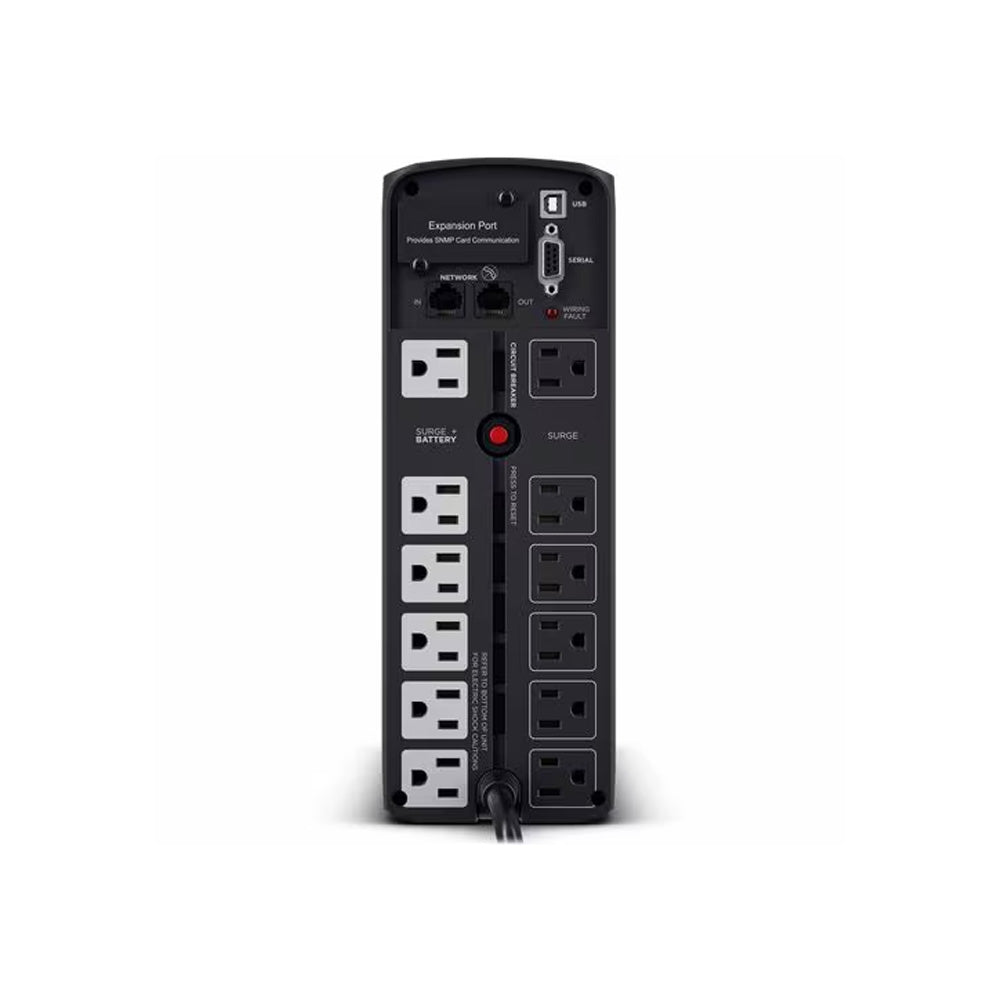 The CP1500PFCLCD uses Automatic Voltage Regulation (AVR) to correct minor power fluctuations without switching to battery power, which extends battery life. AVR is essential in areas where power fluctuations occur frequently. The CP1500PFCLCD comes with a three-year warranty (including coverage of batteries) and a $500,000 Connected Equipment Guarantee.