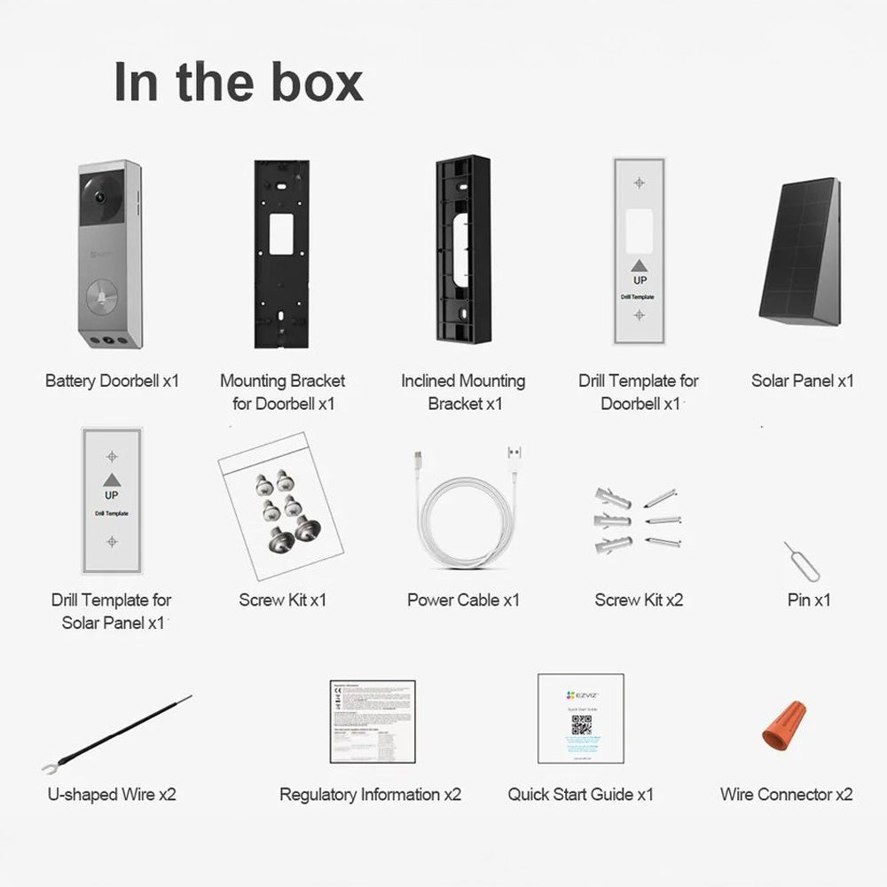 Double protection, half the trouble - Introduce EZVIZ’s first dual-lens video doorbell with unparalleled vision, complex detection features, and easy solar charging option. Combining a 2K main camera and a 1080p bottom camera, the EP3x Pro detects both moving people and delivered packages to help you watch over your front door in a smart way. It’s also a kit that you can truly set and forget — it comes with free, built-in 32GB eMMC storage capacity, and uses the included solar panel to run on green energy.