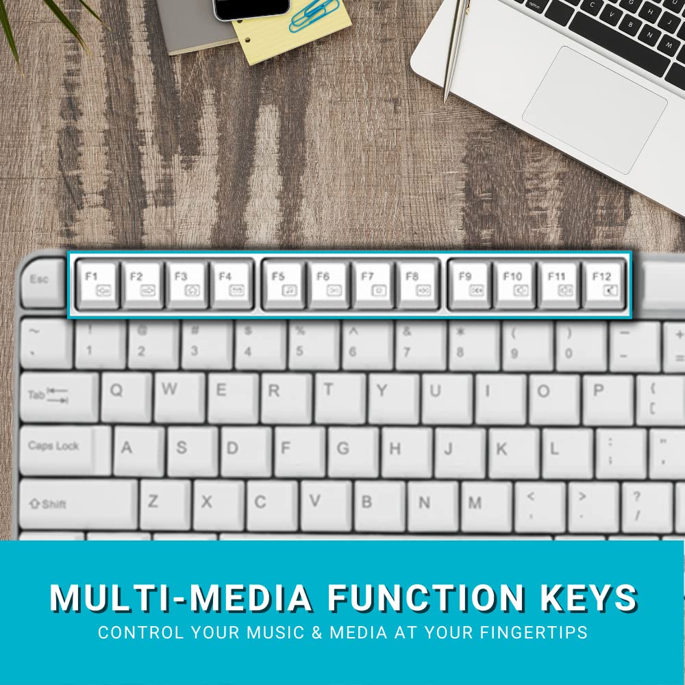 The classic keyboard look also features extra multimedia keys for further convenience. Multimedia hotkeys give you quick access to functions like media player, homepage, volume adjustment, and more.