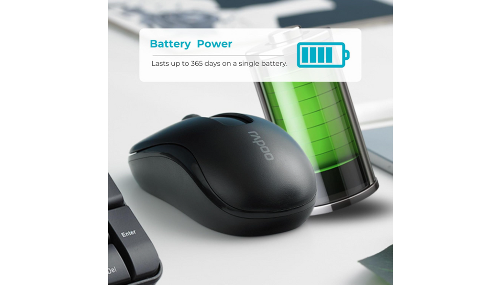 Thanks to Rapoo’s energy-saving technologies, combined with the on/off switch, you can use this set without replacing batteries for up to 12 months.