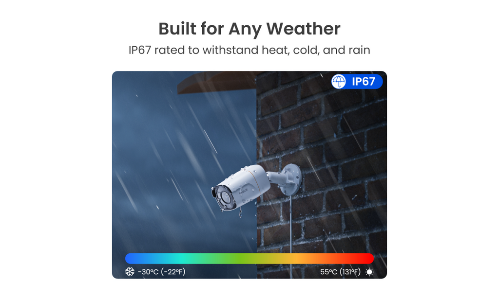 - Ready for Anywhere, Indoors & Outdoors - Armed with a rugged housing with IP67 Certified weatherproof and -30°C to +55°C temperature rating.