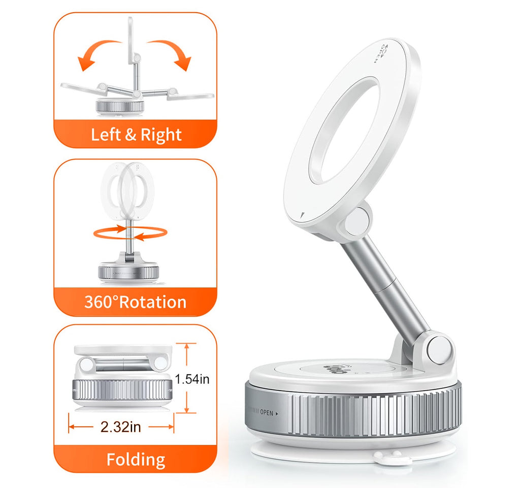 - Stable magnetic hold with 360° rotation & dual-axis adjustment for versatile viewing angles;